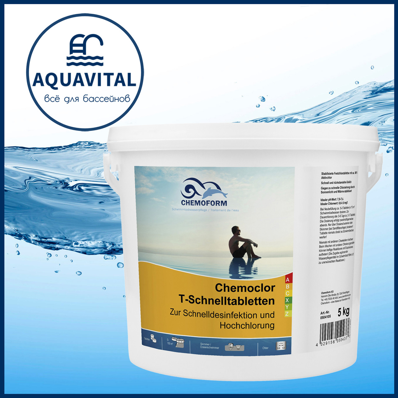 Виробництво Німеччина. Товар має гігієнічні сертифікати! Розфасований у пластикове відро місткістю 5 кг. У відрі 250 таблеток.