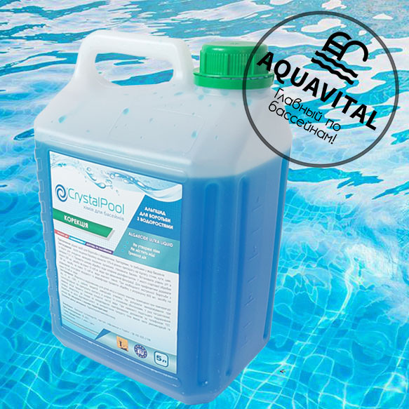 Crystal Pool Algaecide Ultra Liquid — професійний альгіцид на основі гідроксипропіламонійхлориду, призначений для знищення водоростей, грибків і плісняви у воді басейну. Ефективний проти всіх типів водоростей: синьо-зелених, бурих і червоних. Не змінює pH та безпечний для купальників.
