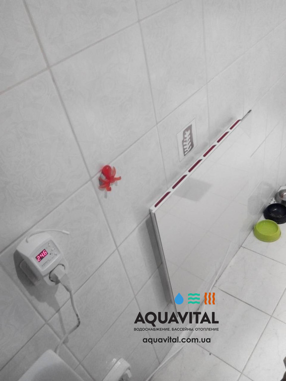 Установив такую керамическую панель и подключив её терморегулятору, мы добились того, что в ванной комнате установилась температура 28 °C, которую обогреватель теперь будет поддерживать, работаю при этом всего 6 часов в сутки.